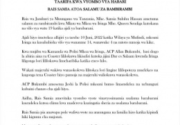 Mhe. Rais wa Jamhuri ya Muungano wa Tanzania, Samia Suluhu Hassan ametoa Salamu za Rambirambi kwa Mkuu wa Mkoa wa Iringa kufuatia Ajali Mbaya iliyotokea Leo eneo la Mafinga Mkoani Iringa ambapo mpaka ...